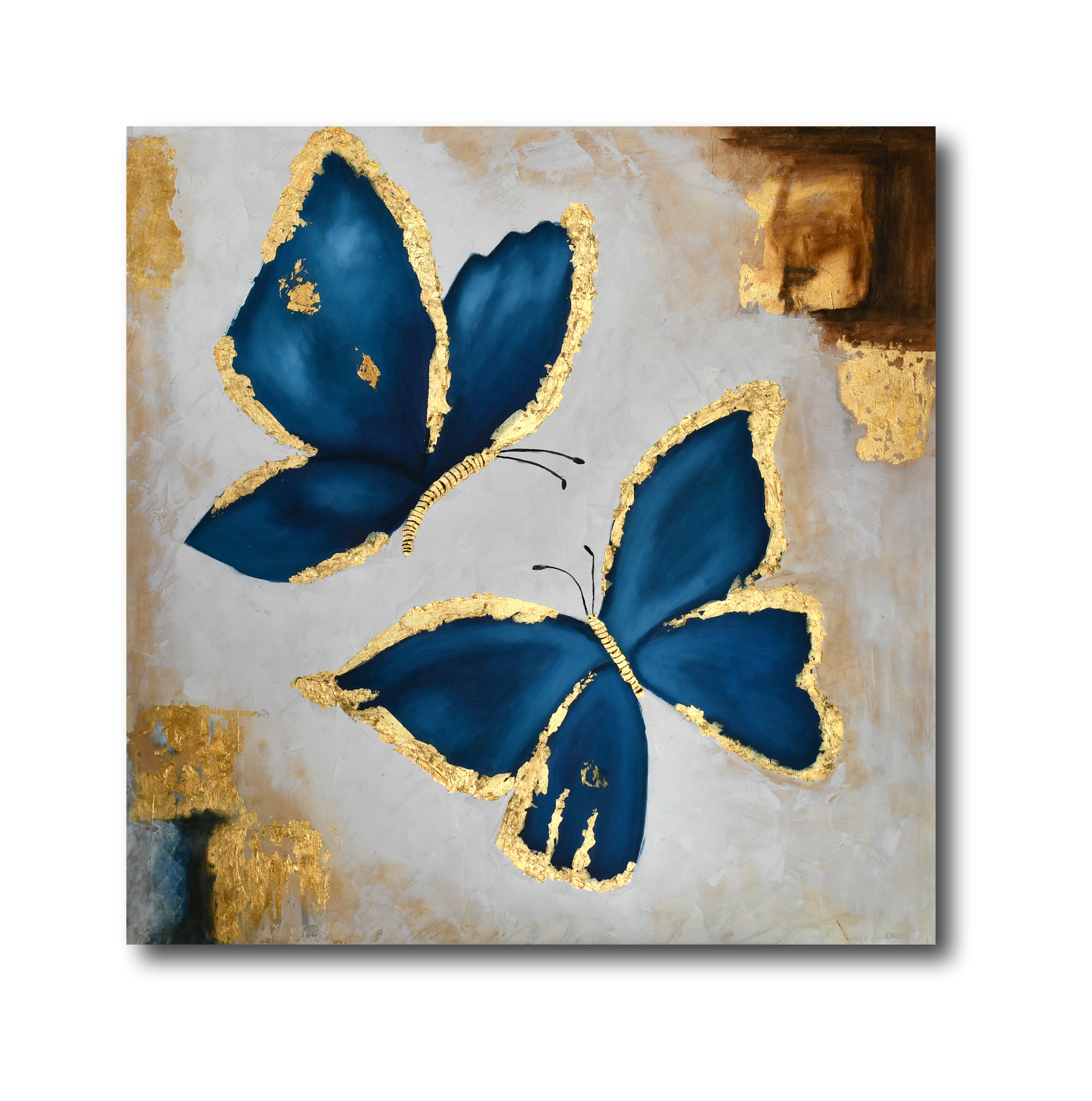 This painting captures the beauty of the butterflies in a modern way including gold leaves.
