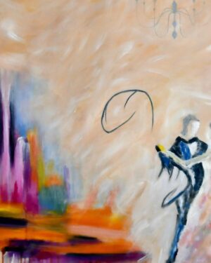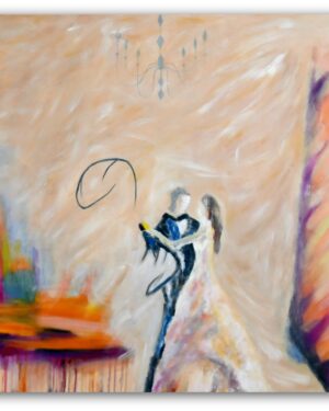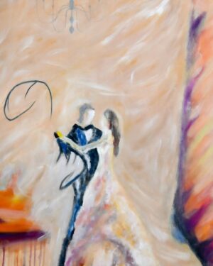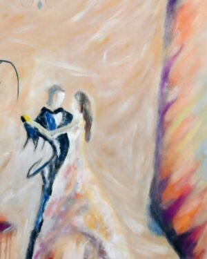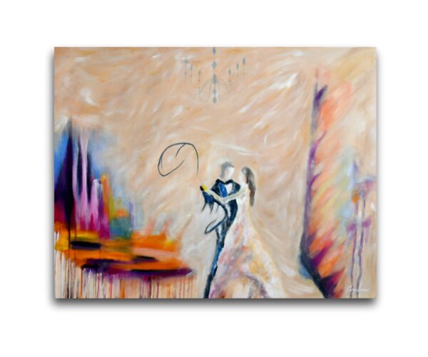 Multiple tools have been applied for the creation of this commission painting including brushes and palette knives, resulting in texture and interest throughout the painting.