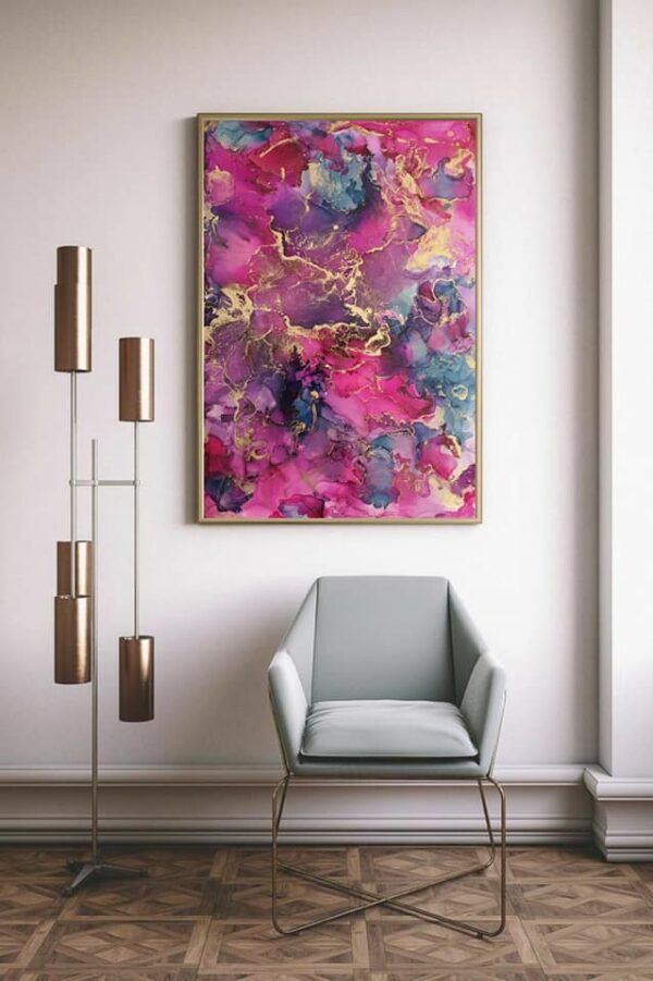 Mixed Media fluids mounted on paper, comes with white frame