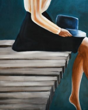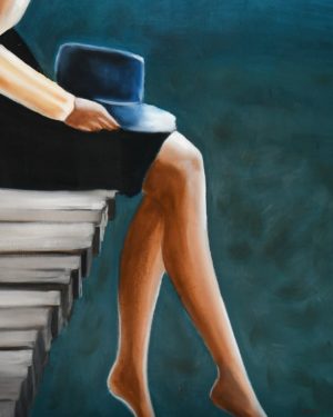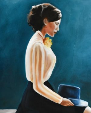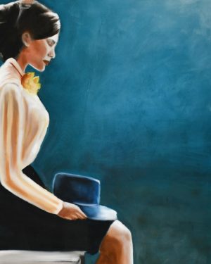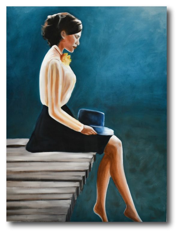 Oil painting for the Daydreaming. Multiple tools have been applied for the creation of this painting including brushes and clothes, resulting in texture and interest throughout the painting.