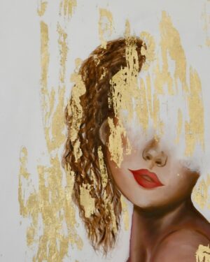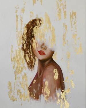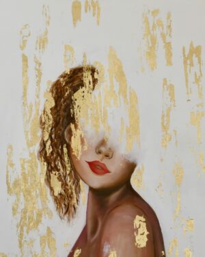 Mixed Media for Golden State of Mind. Multiple tools have been applied for the creation of this painting including brushes and clothes, and golf leaves, resulting in texture and interest throughout the painting.