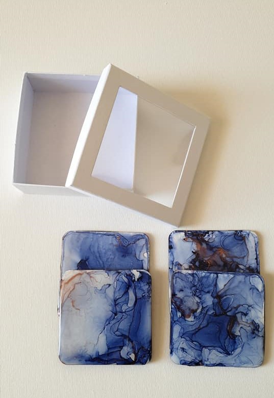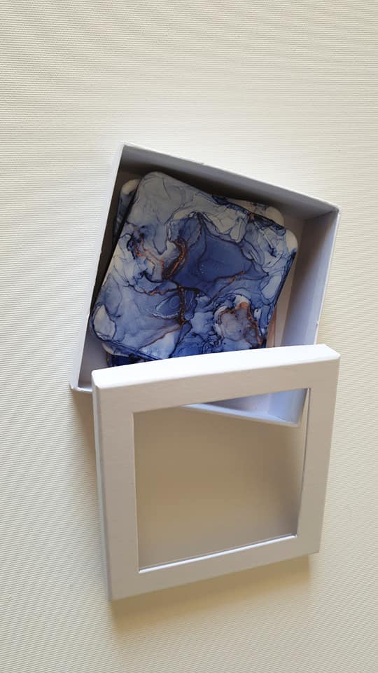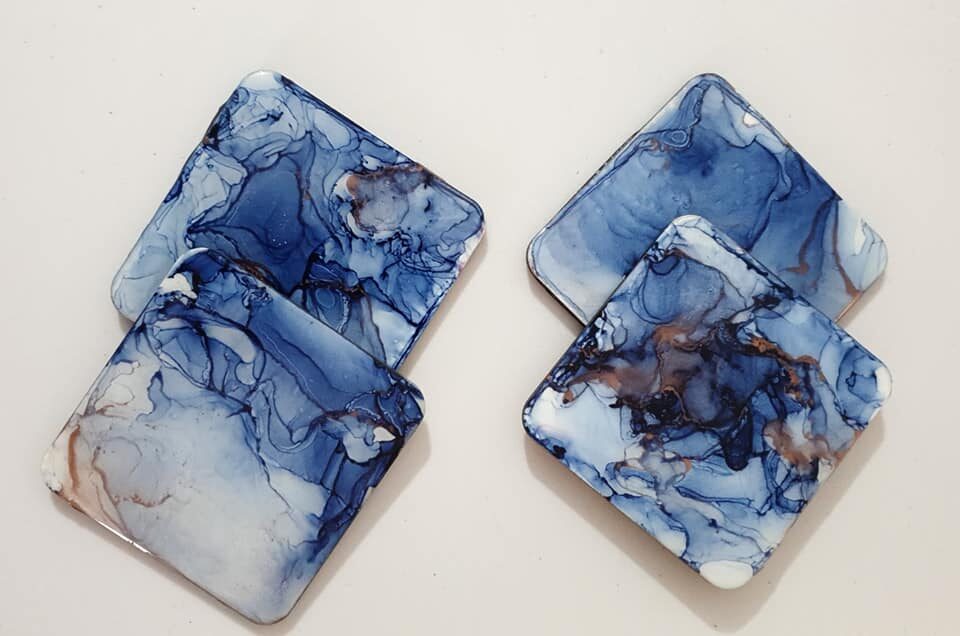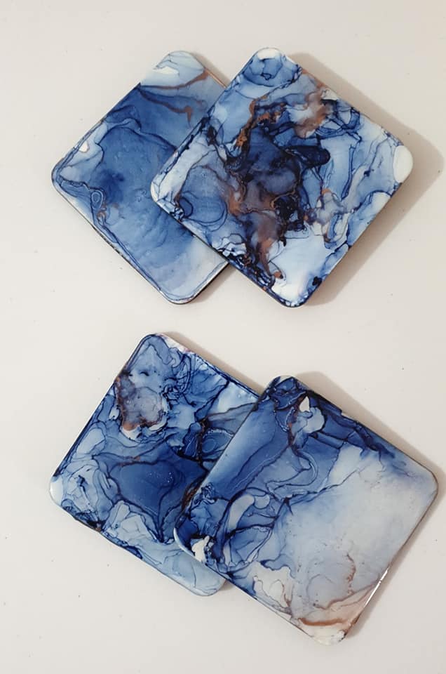 Hand painted coasters. All pieces are one of a kind and totally unique, so you won’t find another that looks quite like it!