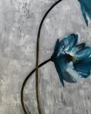 Mixed Media for the Along the Way. Multiple tools have been applied for the creation of this painting including brushes and clothes, knives, resulting in texture and interest throughout the painting.