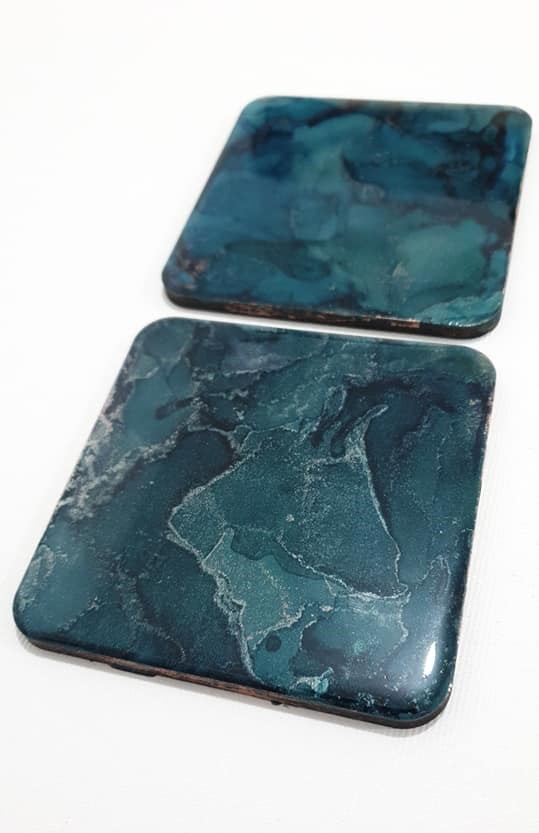 Hand painted coasters. All pieces are one of a kind and totally unique, so you won’t find another that looks quite like it!