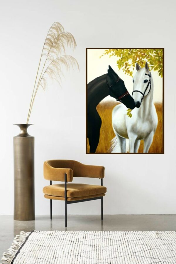 Multiple tools have been applied for the creation of this commission painting including brushes and palette knives, resulting in texture and interest throughout the painting.